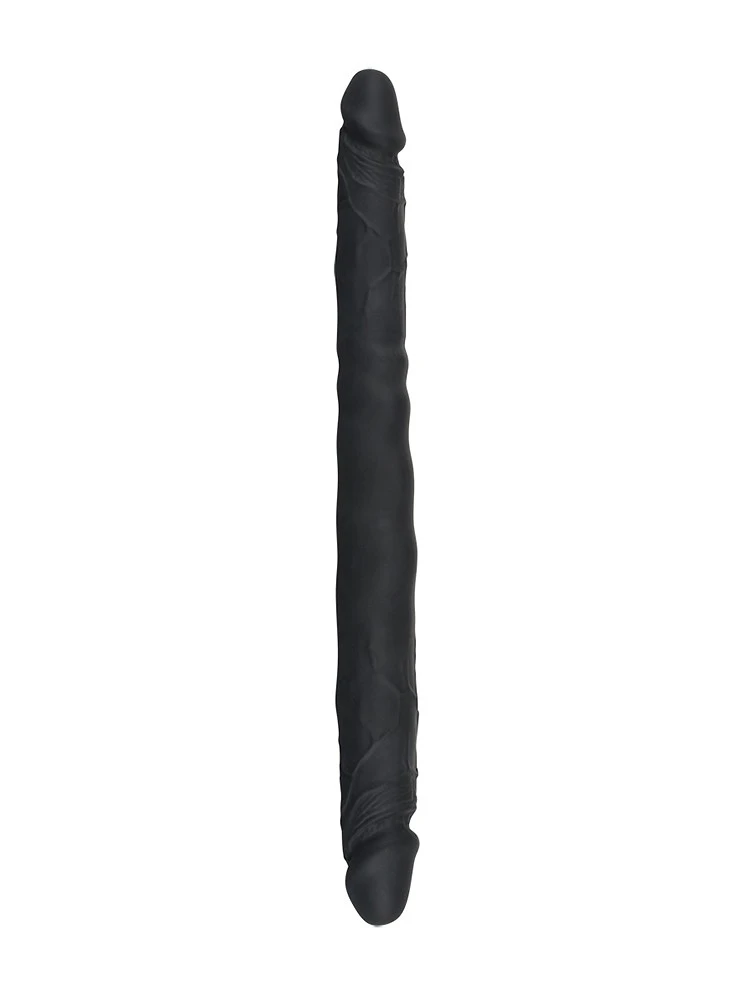 Vergiss das kleine Schwarze, dein neues Must-Have ist der pralle schwarze Double Dong Dildo von Bad Kitty. Die zwei prallen, ausgeprägten und formschönen Eicheln verführen dich wie zwei echte Liebhaber, die realistische Äderung stimuliert dich zusätzlich. Die stolze Länge von 40 cm und die Durchmesser von 2,8 cm und 4 cm füllen dich von vorne und hinten aus. Dein neues Lieblingstoy ist natürlich phthalatfrei und besteht aus weichem, elastischen Silikon.