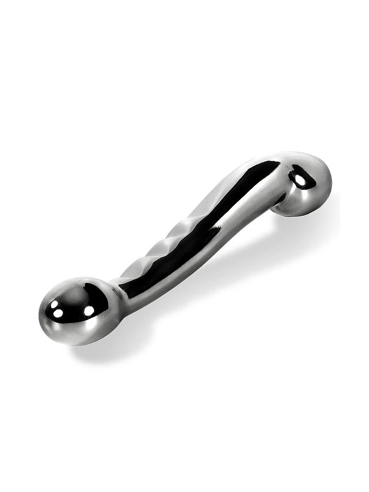 Ein Spielzeug, welches Dich nicht nur zum Orgasmus zu bringen wird, sondern etwas fürs Auge bietet – das ist der elegante G-Punkt Edelstahl-Dildo von Black Label. Der schwere Doppeldildo ist 17,5 cm lang und hat einen Durchmesser von maximal 30 mm. Die sanft geschwungene Form wird durch eine Seite mit Reizrillen und eine Seite mit einer stilisierten Eichel vervollständigt. So kommst Du garantiert stilvoll zum Höhepunkt!