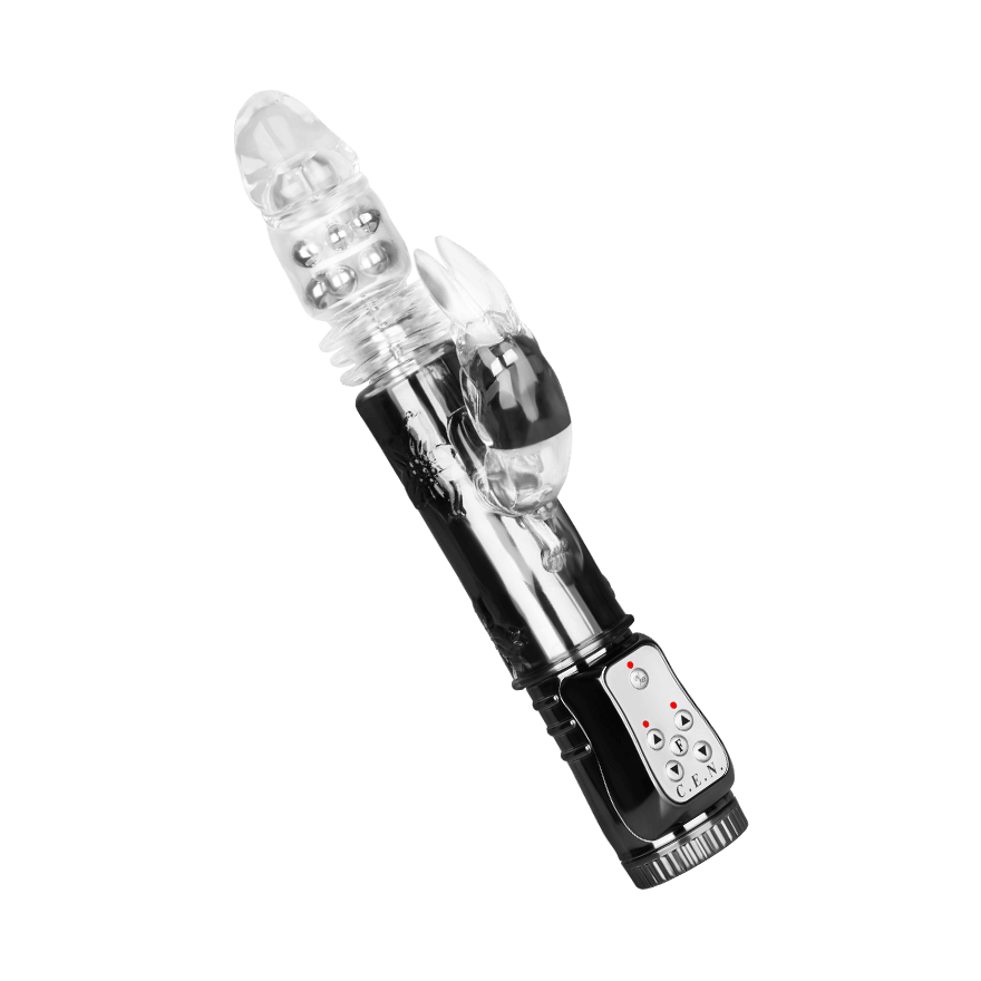 Ein Vibrator, den jede Frau in ihrem Nachtschränkchen haben sollte. Der Rabbit ist mittlerweile ein echter Klassiker und nicht mehr aus den Schlafzimmern wegzudenken. Jack Rabbit vereint sinnliche Vibration, stimulierend rotierende Perlen und leichte Stoßbewegungen, also alles, was Frau dabei hilft, den Gipfel der Lust zu erklimmen. Swinging Beauty Der weiche Schaft des Rabbits birgt zwei stimulierende Perlenketten, die sich sinnlich drehen. Dabei rotiert der Schaft schwungvoll und bringt Dein inneres Lustzentrum mit zusätzlichen Stoßbewegungen in 8 Programmen zum Beben. Eine ausgeprägte Rippenstruktur und eine stilisierte Eichel stehen dem flotten Freudenspender helfend zur Seite. Vibrating Bunny Was wäre ein Rabbit ohne Klitorisreizer? Natürlich verfügt der Vibrator über einen Reizer in verspielter Häschenform. Der kleine Korpus beinhaltet alles, was ein Bunny ausmacht: zarte Pfötchen, eine süße Stupsnase sowie opulente Ohren. Das zauberhafte Tierchen vibriert in 8 abwechslungsreichen Programmen und das unabhängig vom Schaft. Jack Rabbit verwöhnt Dich also auf ganzer Linie und massiert dabei gekonnt Deinen G-Punkt und Deine Klitoris – ein echtes Multitalent eben. Dass Hasen wasserscheu sind, kann schon sein. Doch Jack macht seichtes Gewässer gar nichts aus. Der Rabbit-Vibrator ist wasserdicht verarbeitet und bereitet Dir auch in der Badewanne leidenschaftliche Wonnen. Material und PflegeDas Toy ist aus TPE gefertigt. Das Material ist ohne Weichmacher und geruchlos. Es nimmt Deine Körpertemperatur schnell an und ist sehr elastisch und weich. Wenn Du TPE gut pflegst, ist es sehr langlebig und widerstandsfähig. Du kannst es mit Wasser und milder Seife reinigen und für eine besonders gründliche Reinigung noch einen antibakteriellen Toycleaner verwenden. Noch größeren Genuss erreichst Du, wenn Du ein Gleitmittel verwendest. Die Marke CalExoticsDiese Marke bietet nicht nur Sextoys für sie, sondern auch eine große Bandbreite an Toys für Männer, Partnerspielzeugen und Zubehör. Die verspielten Designs und knalligen Farben machen Lust auf mehr. Die nicht enden wollende Vielfalt an Produkten mit innovativen Formen und Funktionen bietet für Liebhaber jeder Geschmacksrichtung etwas. Die große Auswahl an Rabbits ist dabei kein Zufall, denn CalExotics brachte mit dem Jack Rabbit Vibrator den ersten seiner Art auf den Markt.