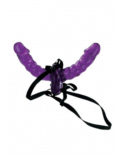 Doppeldildo – Doppellust! Mit diesem Umschnalldildo bereitest du nicht nur deinem Gegenüber Höhenflüge der Lust, sondern auch dir selbst, denn einen der zwei jeweils 14 cm langen Dildos nimmst du in dich selbst auf und einen dein(e) Partner(in). Bei jedem Stoß, so sanft er auch sein möge, wirst auch du die erregende Größe des Dildos spüren. Ein elastischer Harness in Form eines Jocks garantiert dir den nötigen Halt der beiden Dildos, aber ob du dich bei so einem lustvollen Ritt auch halten kannst, sei hier mal dahingestellt. Länge gesamt: 30 cm.